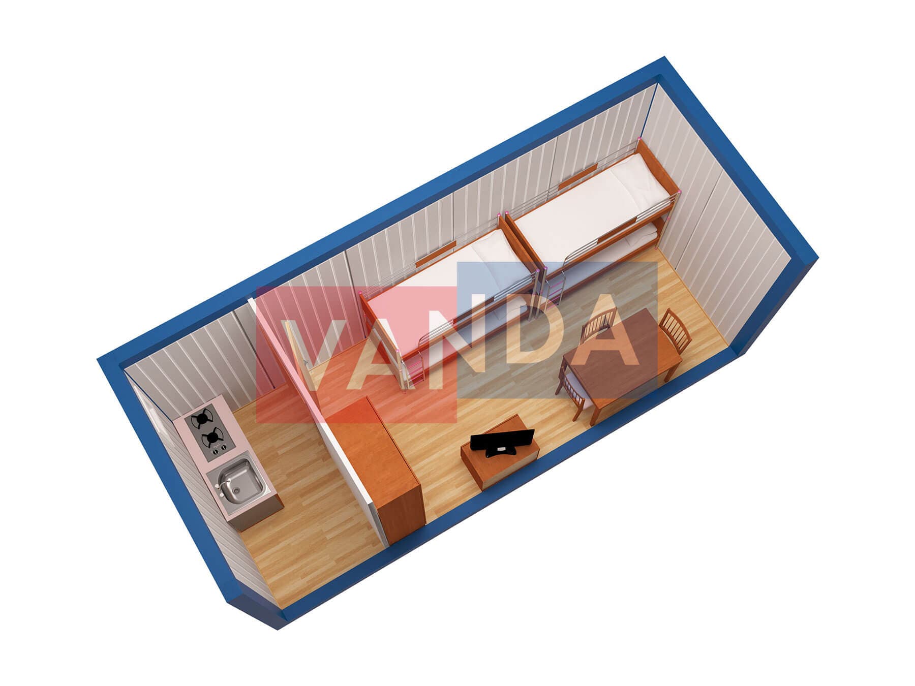 Металлическая бытовка распашонка 5,85 x 2,4 - Оргалит ДВП
